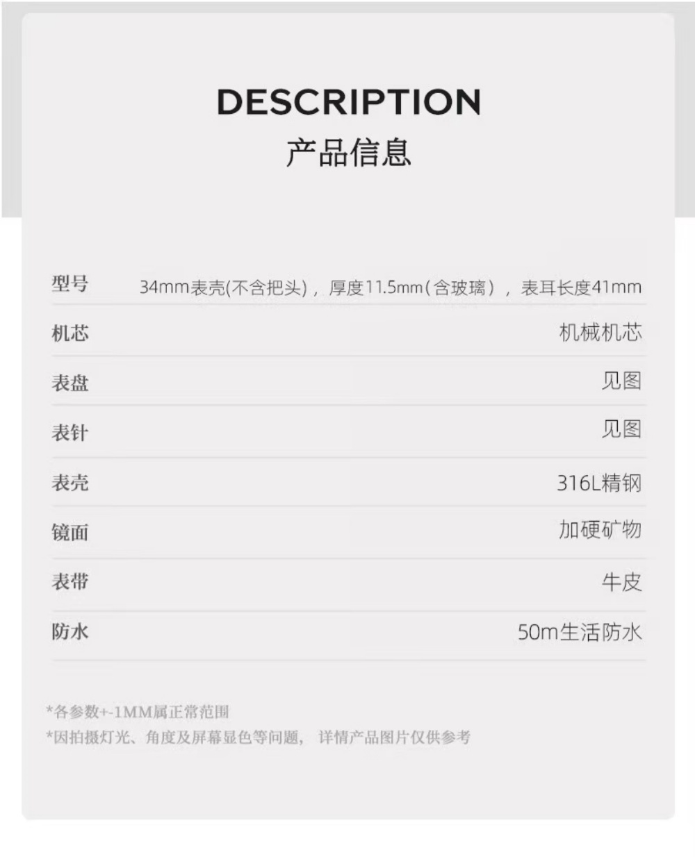 Please be informed that the strap and watch box will be adjusted according to the inventory situation Silver 34mm